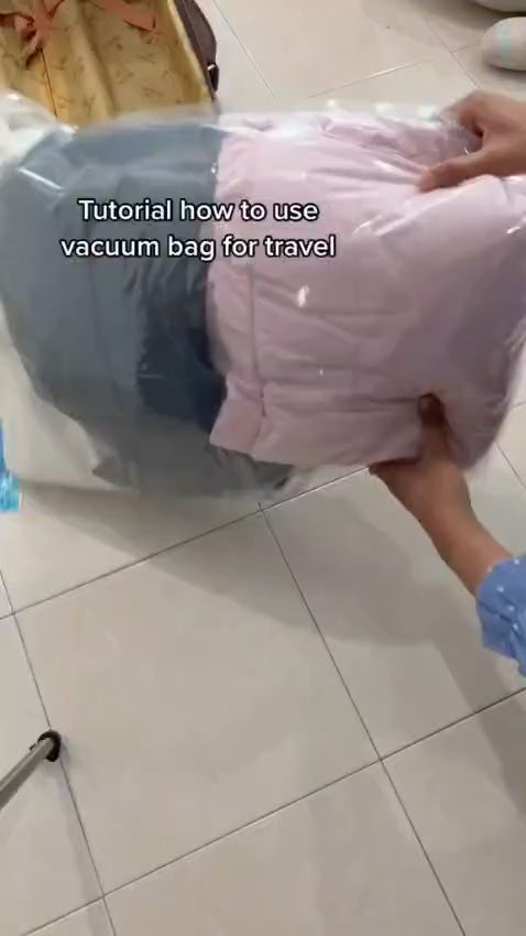 Durable vacuum storage bags that save space and protect clothes, bedding, and blankets with an airtight, leak-proof seal; includes hand pump for easy use.